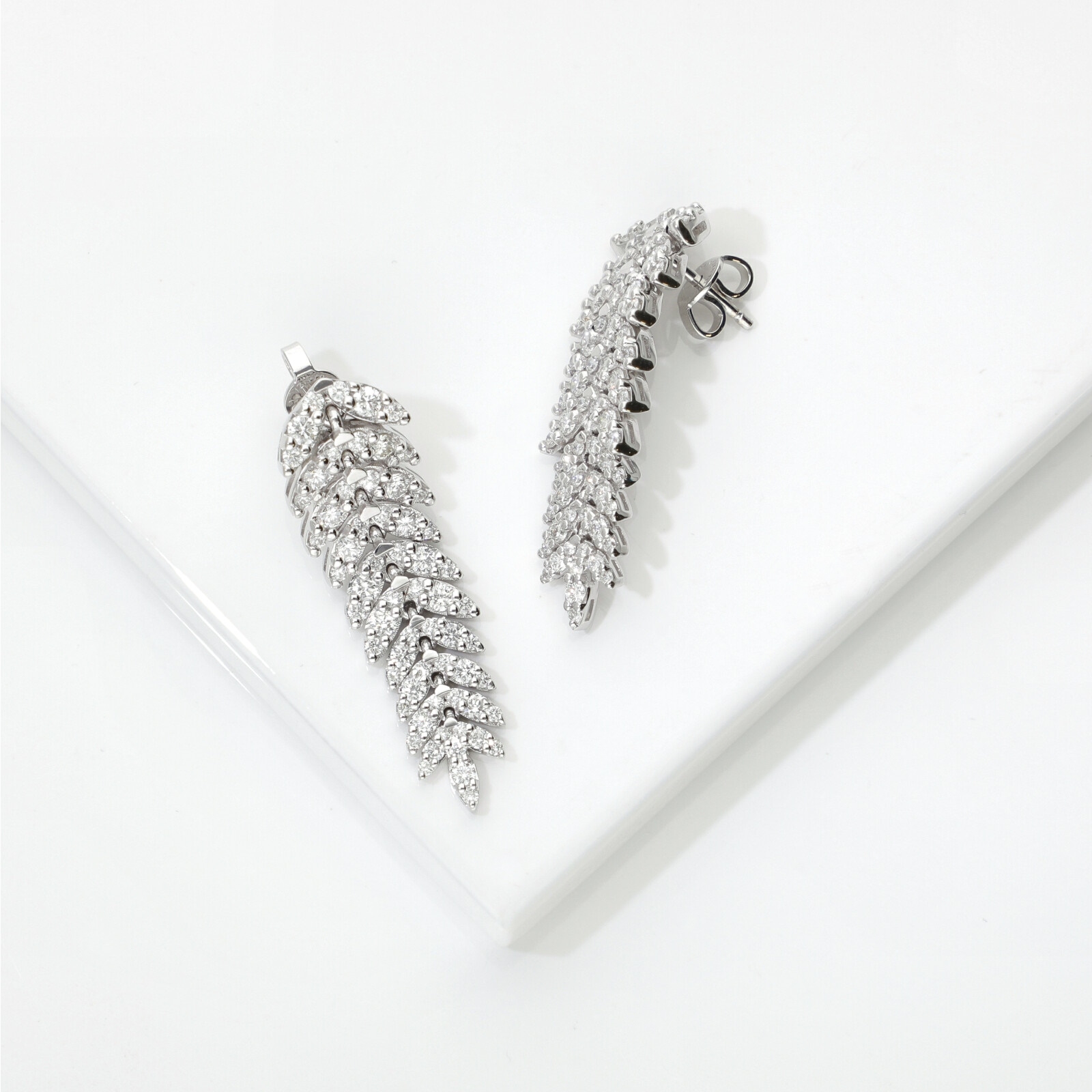 Diese handgefertigten Ohrhänger etwa 3.5 cm lang aus 18 Karat Weißgold verkörpern pure Raffinesse und zeitlose Schönheit. Besetzt mit natürlichen ethischen Diamanten, fangen sie das Licht bei jeder Bewegung ein und verleihen Ihrem Look einen Hauch von Luxus und Eleganz.
