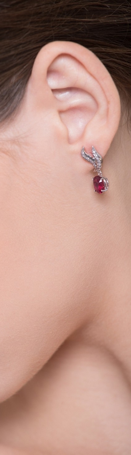 Ohrhänger aus Weißgold mit Brillanten und Rubinen