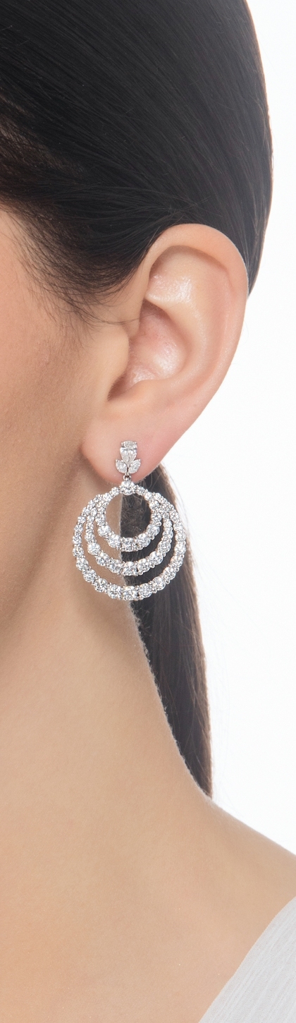 Ohrhänger Weißgold 18K mit drei Kreisen aus Brillanten