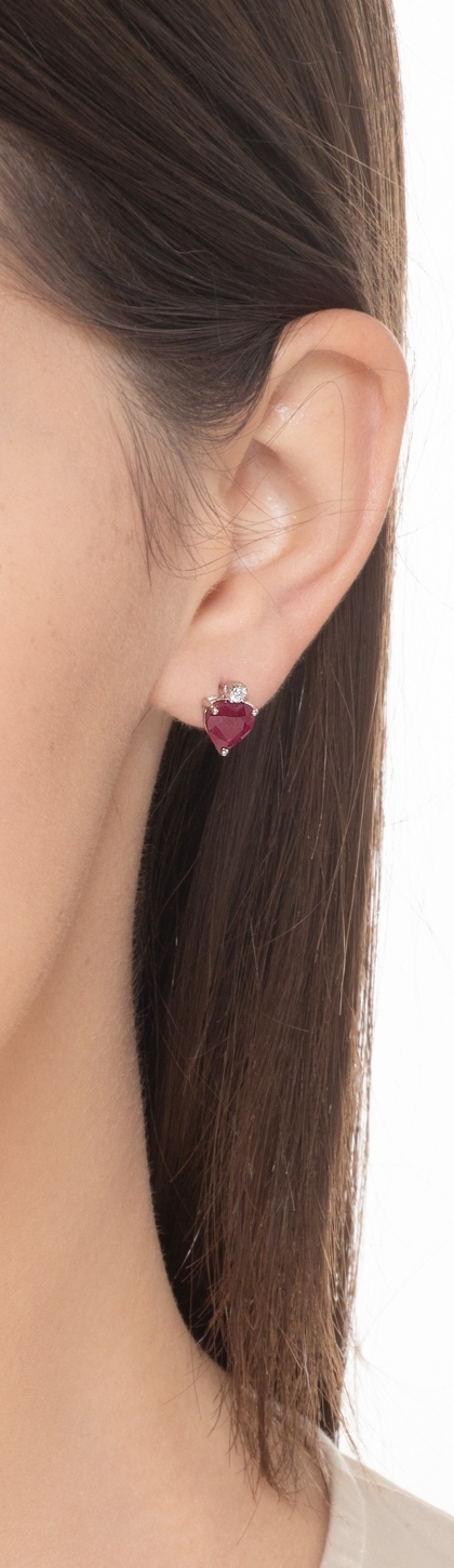 Ohrringe aus 18k Weißgold mit Rubinherz und Diamanten
