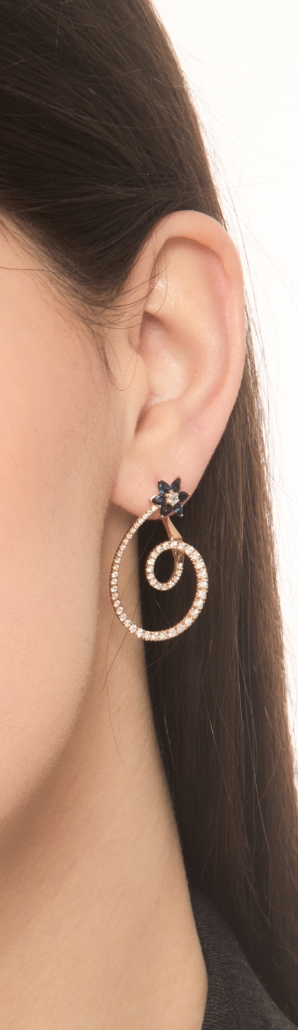 Ohrringe aus Roségold mit blauen Saphiren und Diamanten