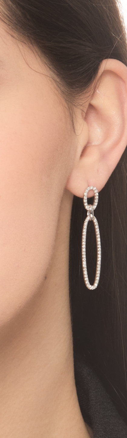 Weißgold 18K Ohrhänger mit zwei Ovalen aus Diamanten
