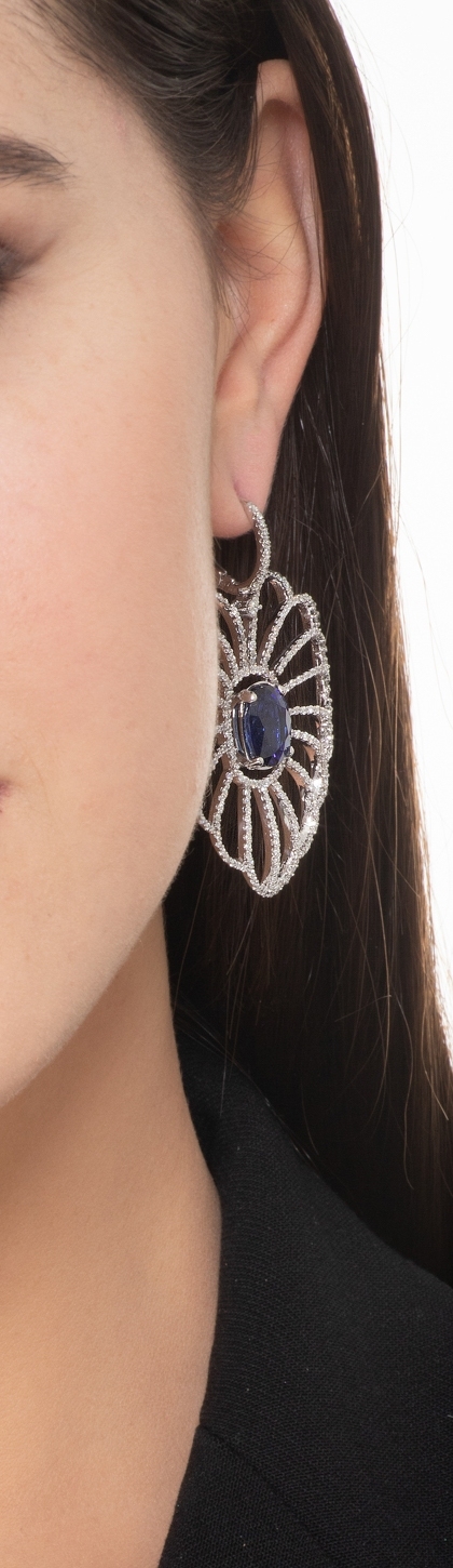 Weißgold Ohrhäger mit Diamanten und blauen Saphiren