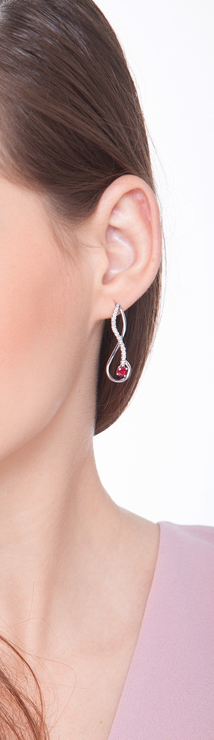 Weißgold Ohrhänger mit Diamanten und Rubin
