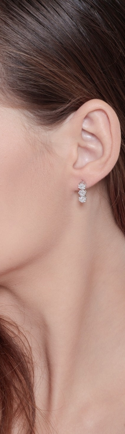 Weißgold 18k Ohrringe mit drei Blumen aus Diamanten