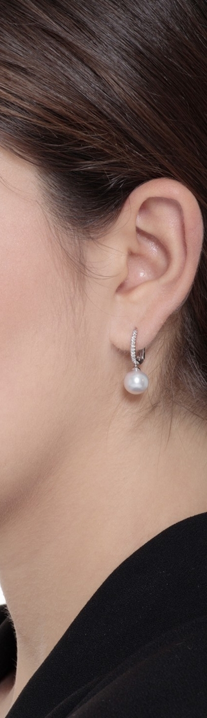 Ohrringe mit Perlen und Diamanten Weißgold 18K