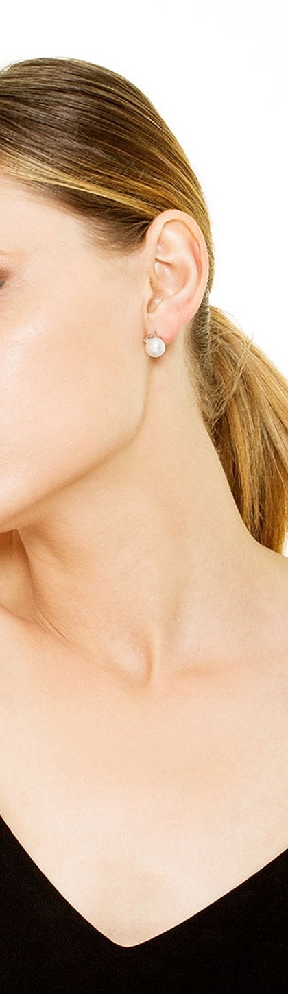 Perlen Ohrstecker mit Diamanten aus Weißgold 18K