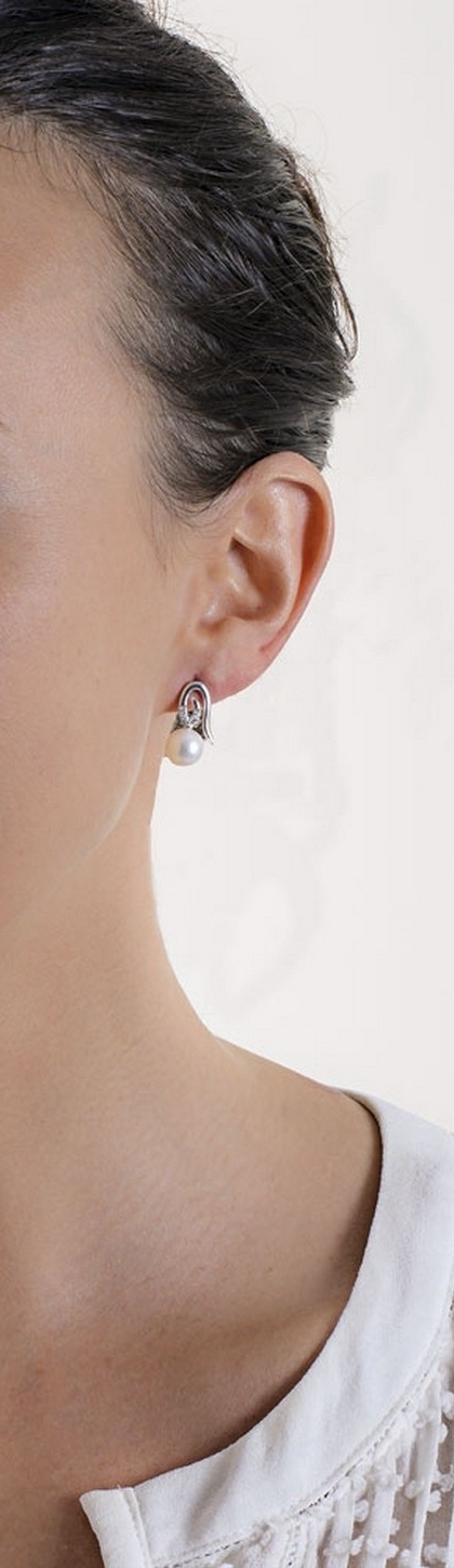 Weißgold Ohrstecker mit Perlen und Diamanten
