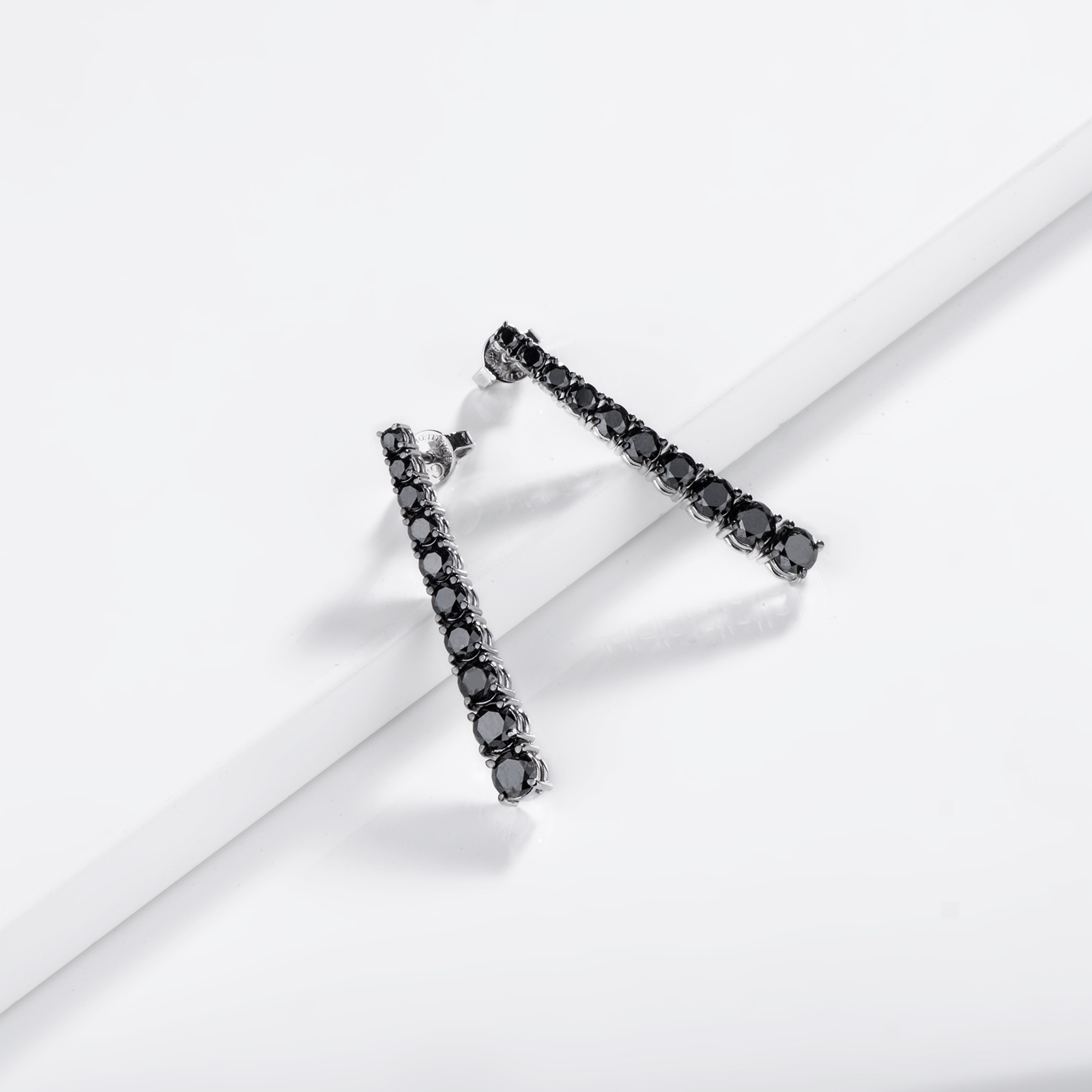 Weißgold 750 Tennis Ohrringe aus schwarzen Diamanten