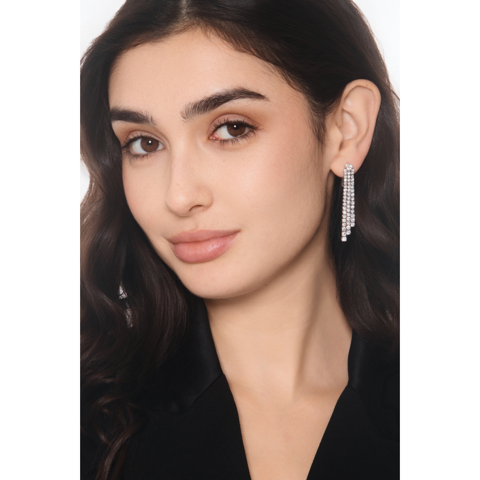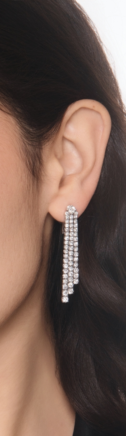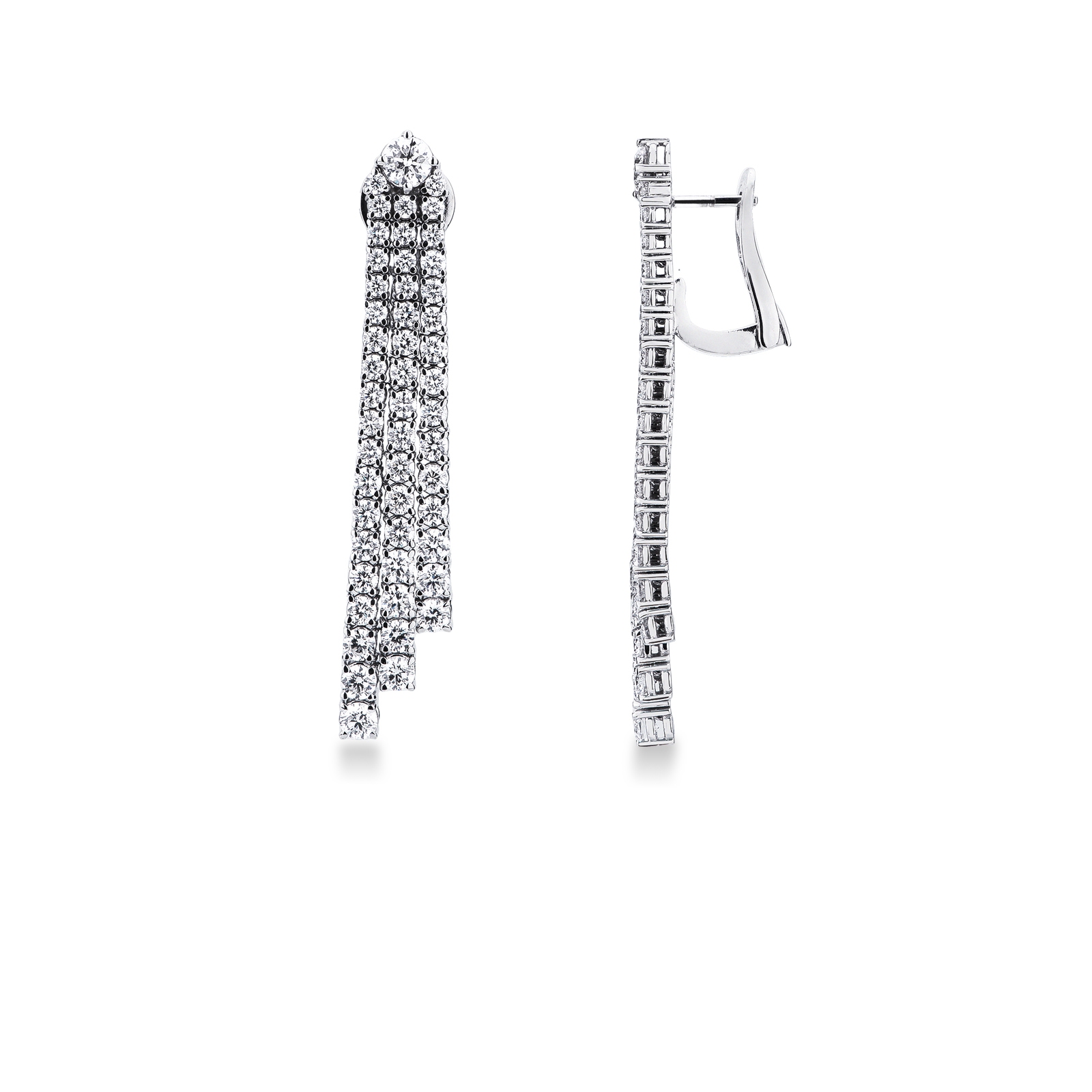 Weißgold 750 Tennisohrringe mit drei Reihen Diamanten