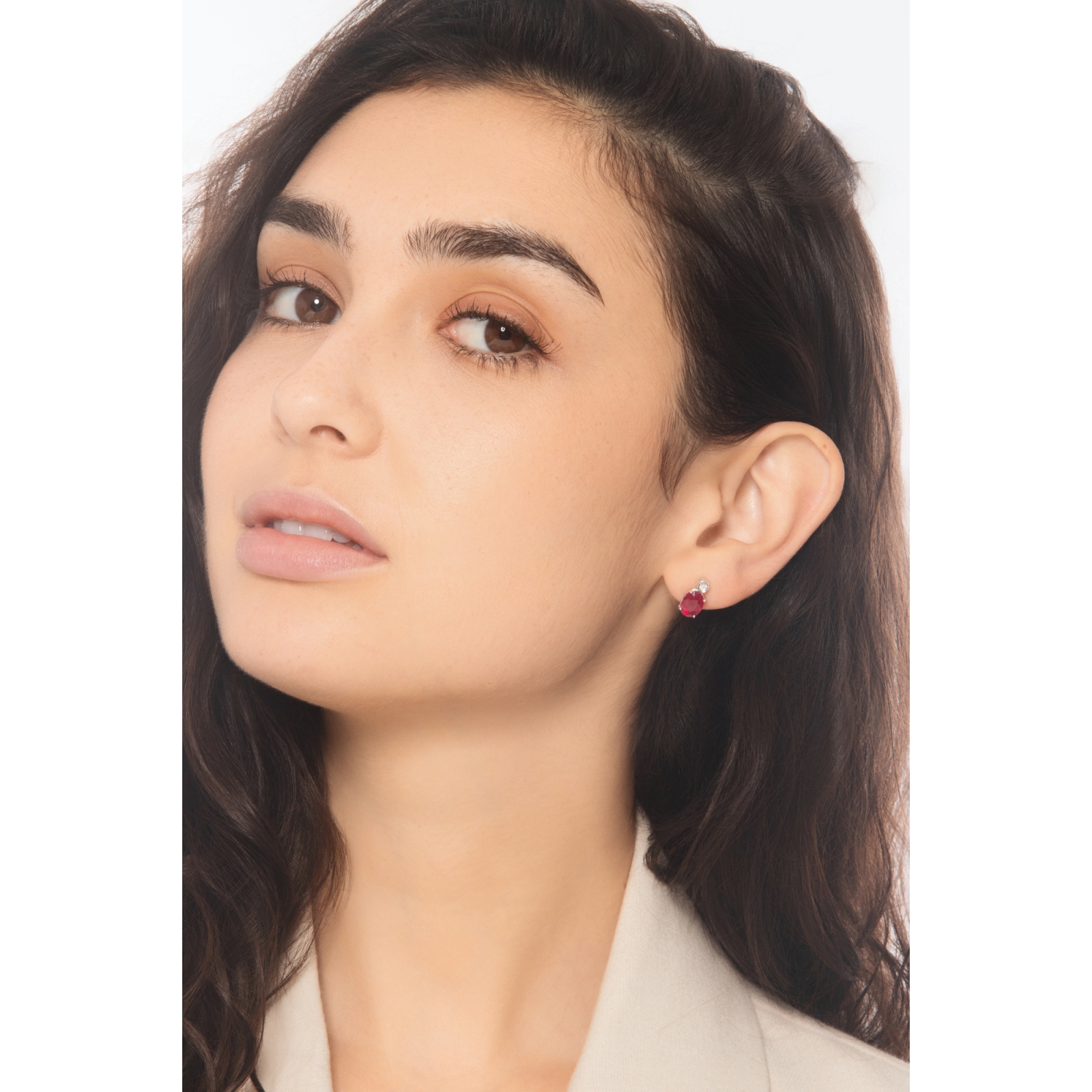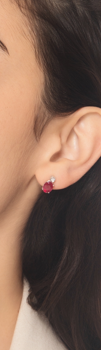 18K Weißgold Rubin Ohrstecker mit Diamanten