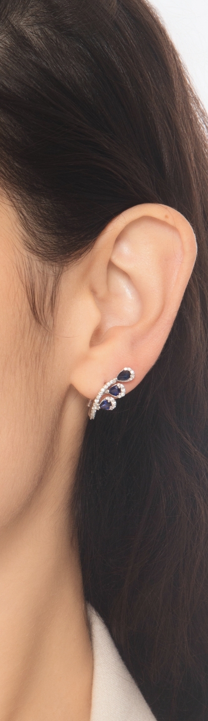 Ausgefallene Ohrringe Weißgold Saphir blau und Diamanten