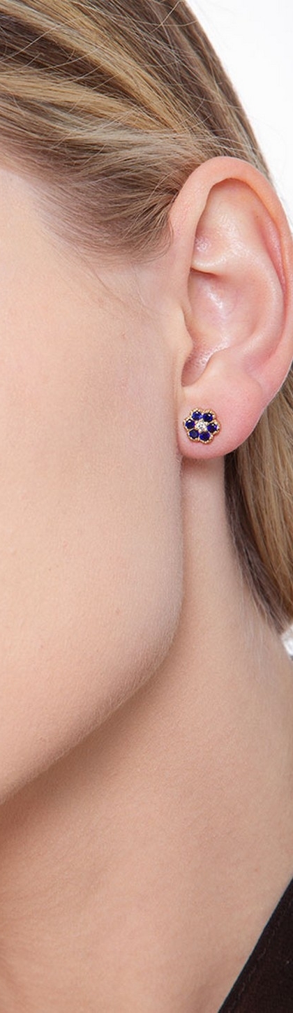 Blumen Ohrstecker Weissgold mit schwarzen und weißen Diamanten