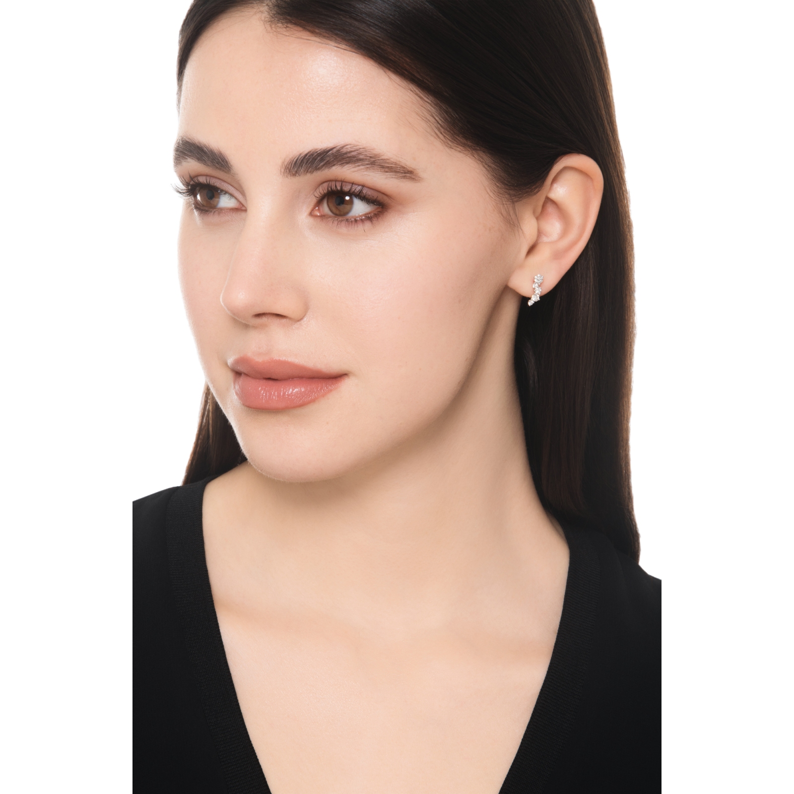Die geschwungene Anordnung der Steine sorgt für einen modernen Climber-Effekt, der sich sanft entlang des Ohrläppchens schmiegt.