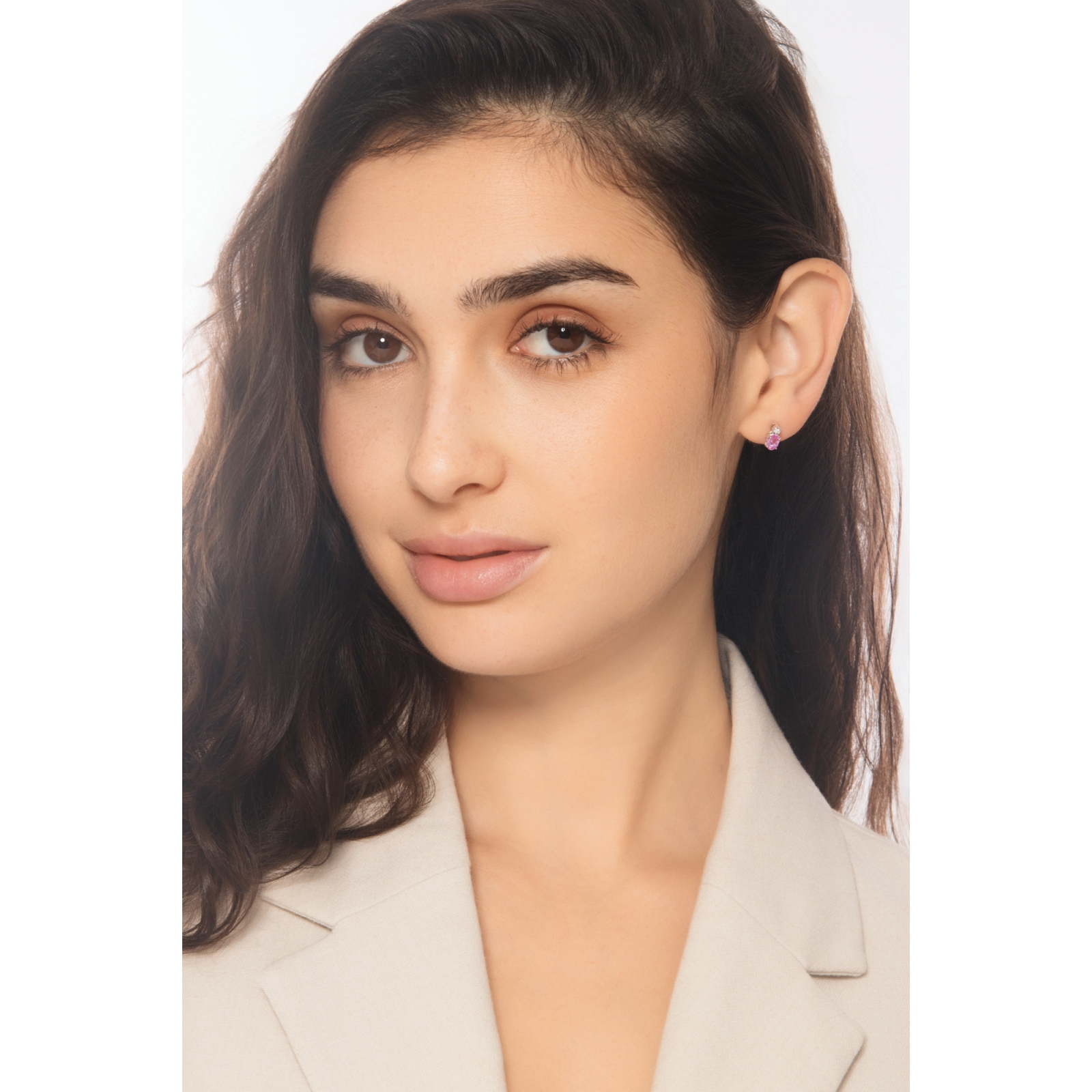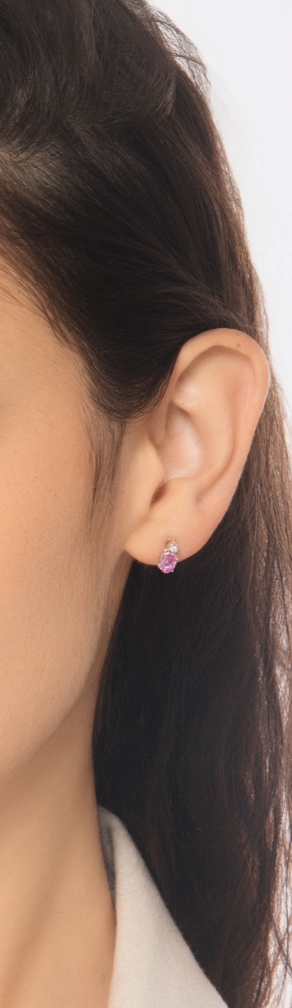 Weissgold 18K Ohrstecker mit Saphir rosa und Diamanten