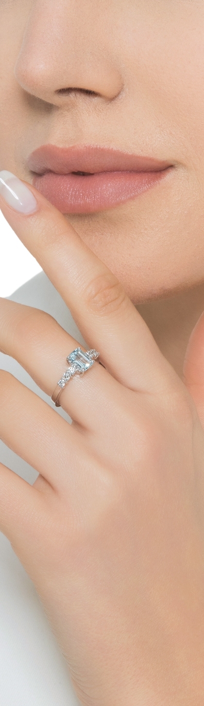 Aquamarin Ring mit Brillanten Weißgold 18K