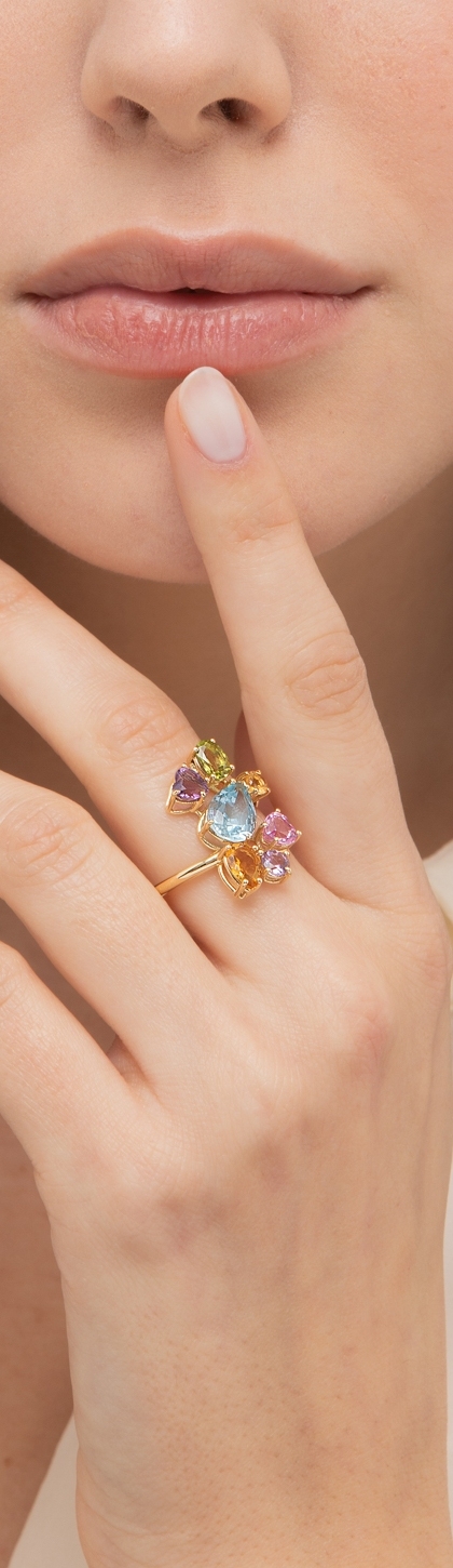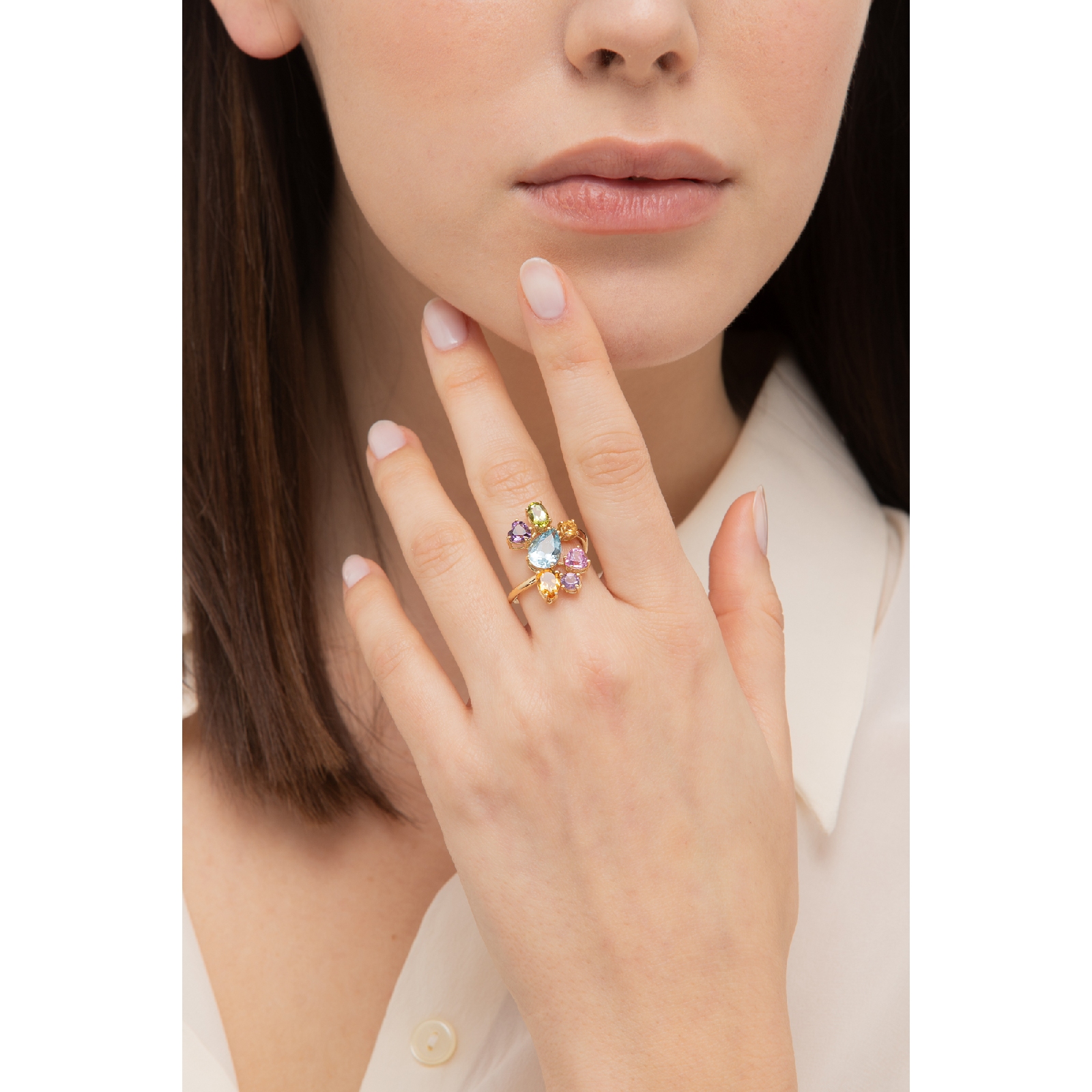 Goldring mit Peridot, Amethyst & Citrin – Multicolor