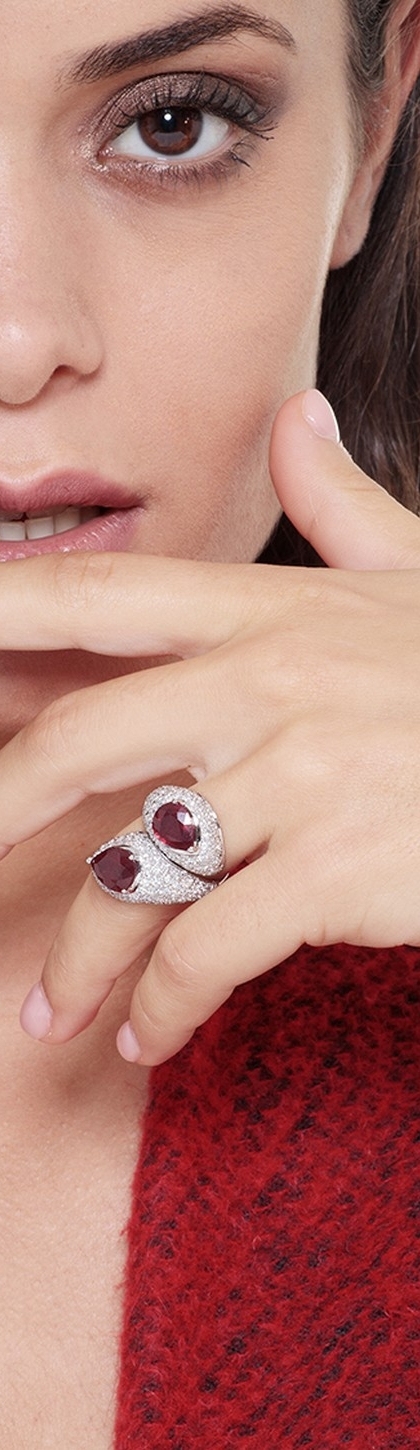 Moderner Weißgold Ring mit Rubinen und Diamanten
