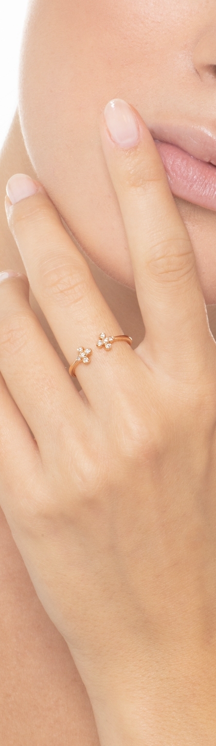 Offener Ring aus 18 Karat Roségold mit zwei Diamantkreuzen
