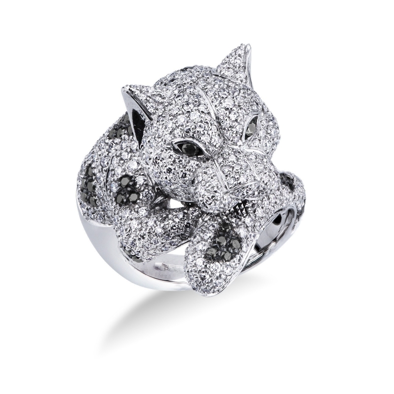 Panther Ring Weißgold mit schwarzen weißen Diamanten