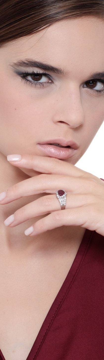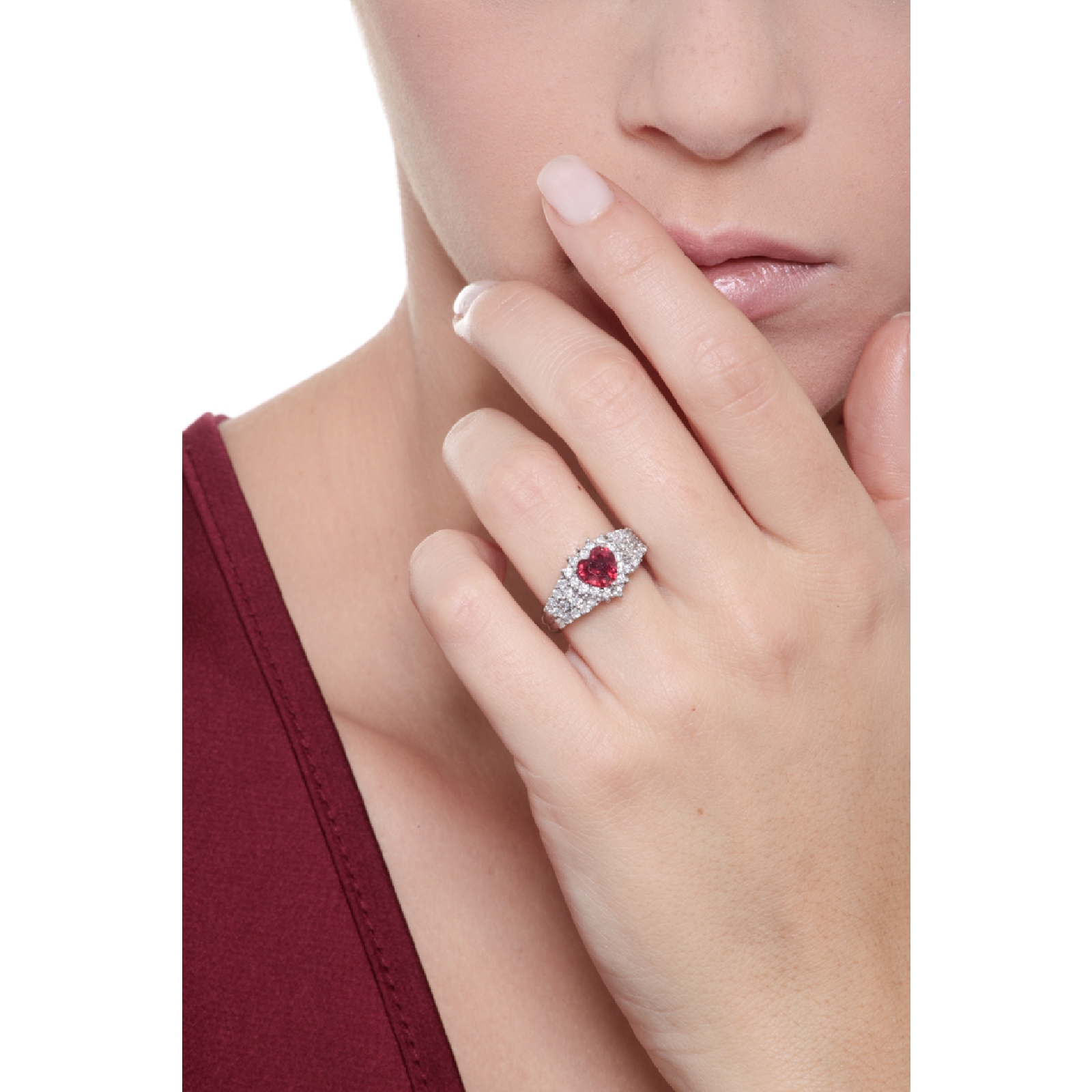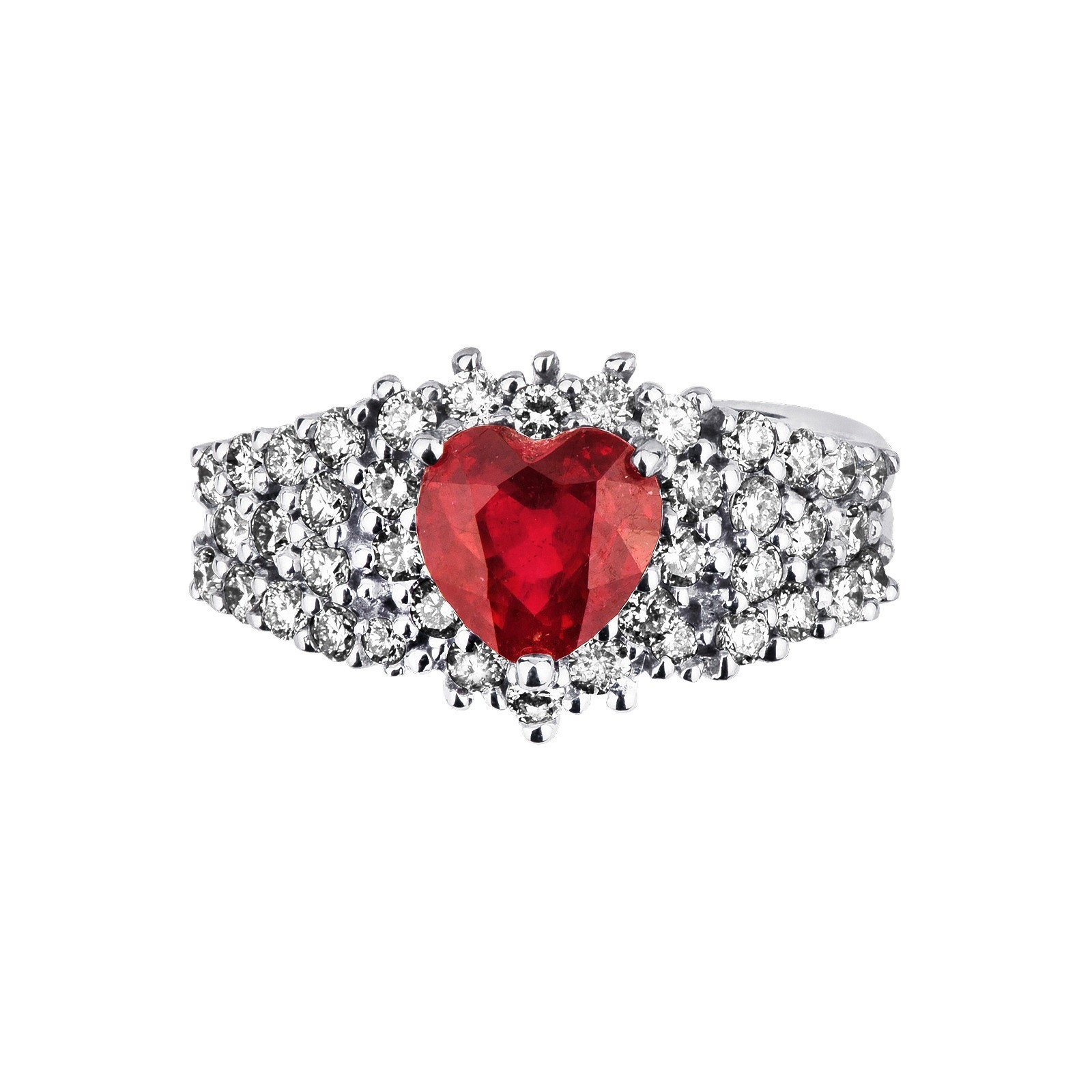 Ring aus 18 Karat Weißgold mit herzförmigem Rubin und Diamanten