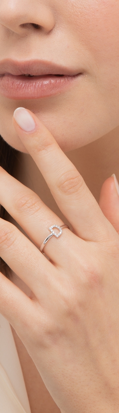 Ring mit Anfangsbuchstabe D aus Weißgold und Diamanten