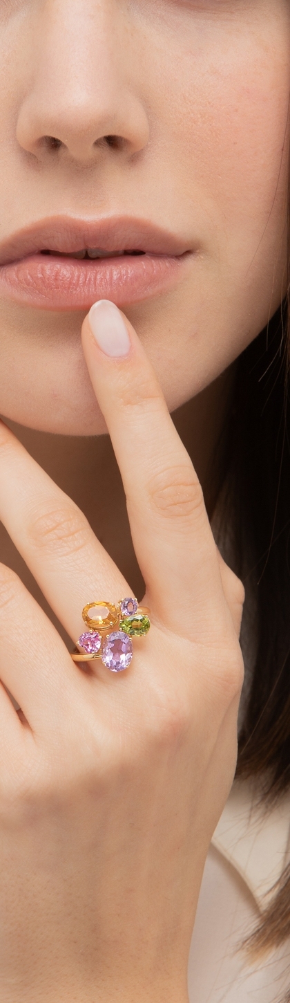 Der Ring ist Teil der exklusiven Rainbow Kollektion, die aus harmonisch abgestimmten Ringen, Armbändern, Ketten und Ohrringen mit bunten Saphiren und anderen farbigen Edelsteinen besteht, wie z.B. Aquamarin, Peridot, Amethyst und Citrin. Diese Kollektion steht für Individualität, Lebensfreude und Stilbewusstsein.