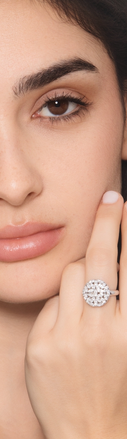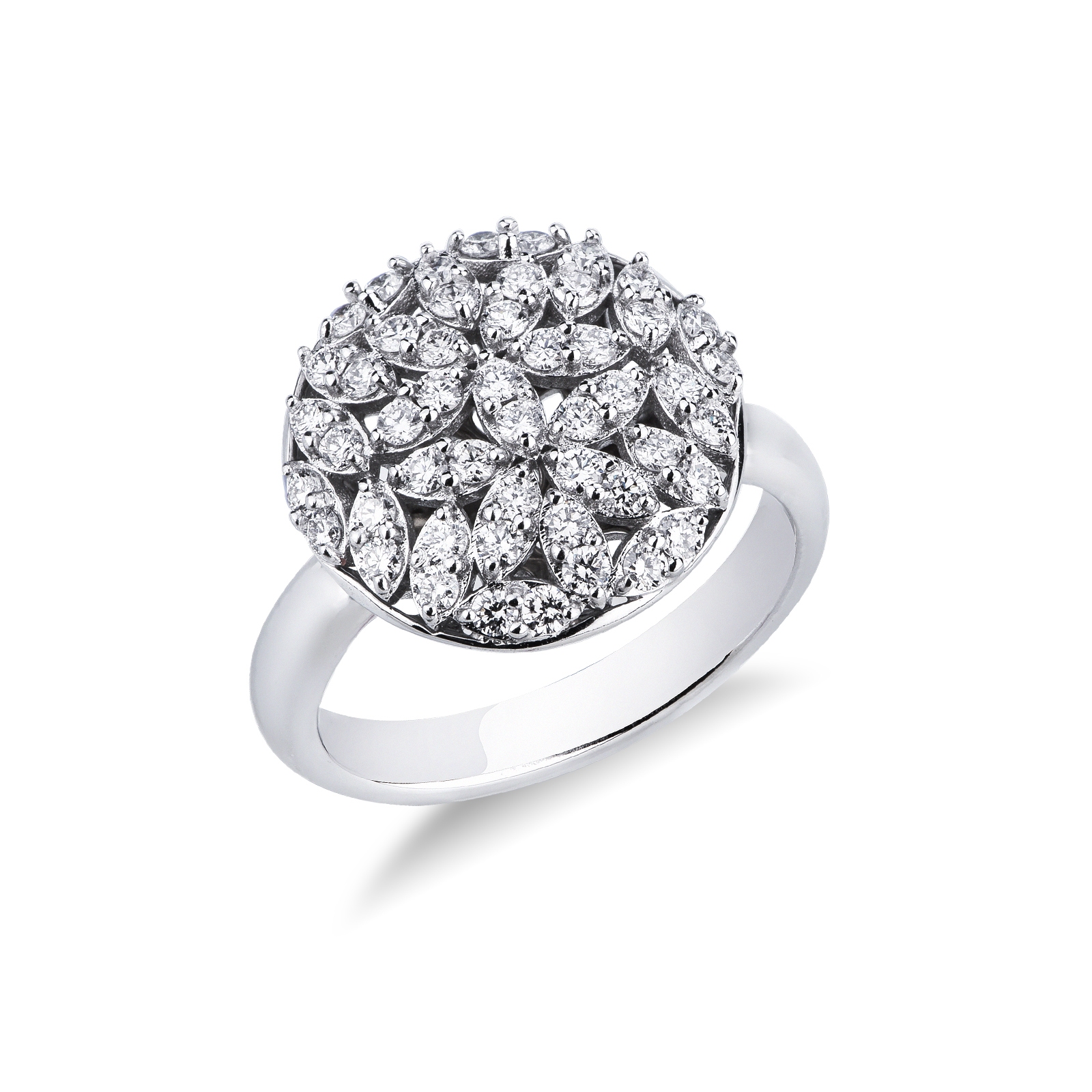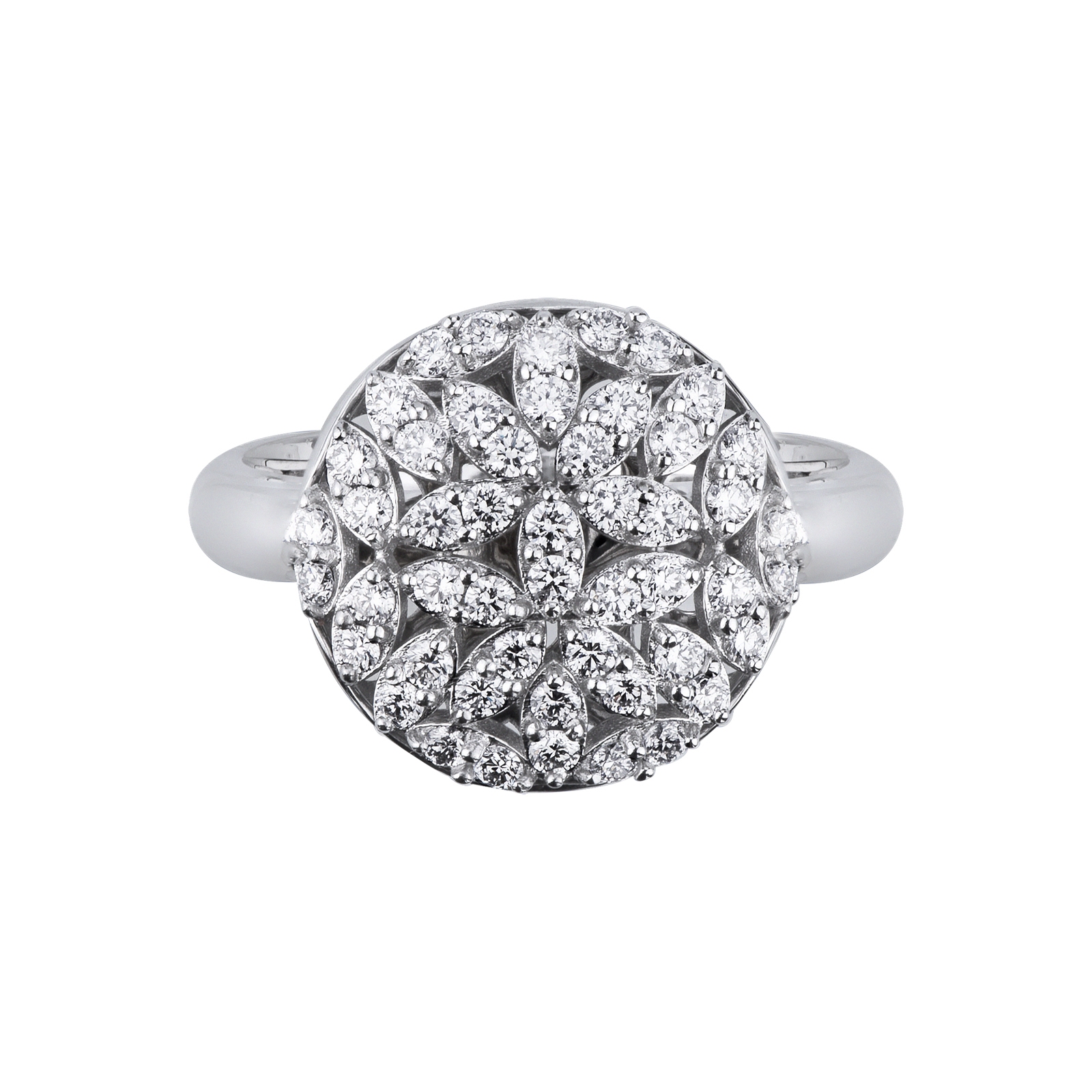 Runder Ring aus 18 K Weißgold mit Blumenmotiven aus Diamanten Brillantschliff, Farbe H, Reinheit VS