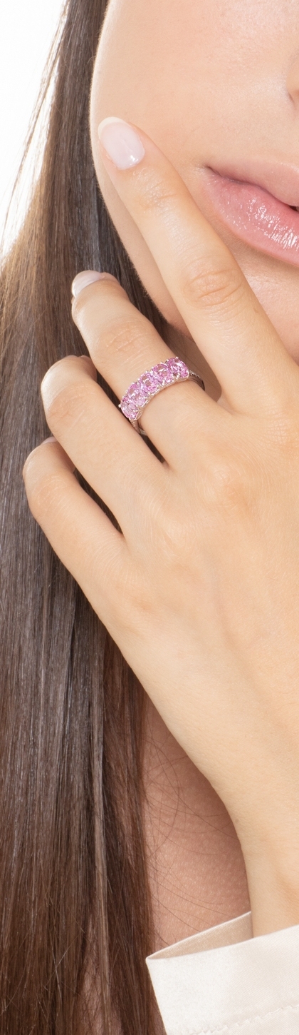 Weißgold Ring Damen mit fünf Saphiren und Diamanten