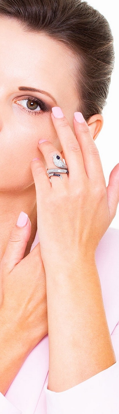 Weißgold Ring Schlange mit Saphiren und Diamanten