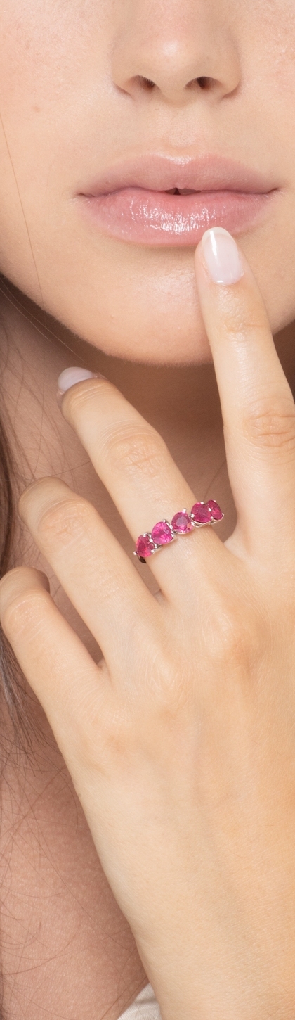 Weißgold Verlobungsring mit fünf herzförmigen Rubinen