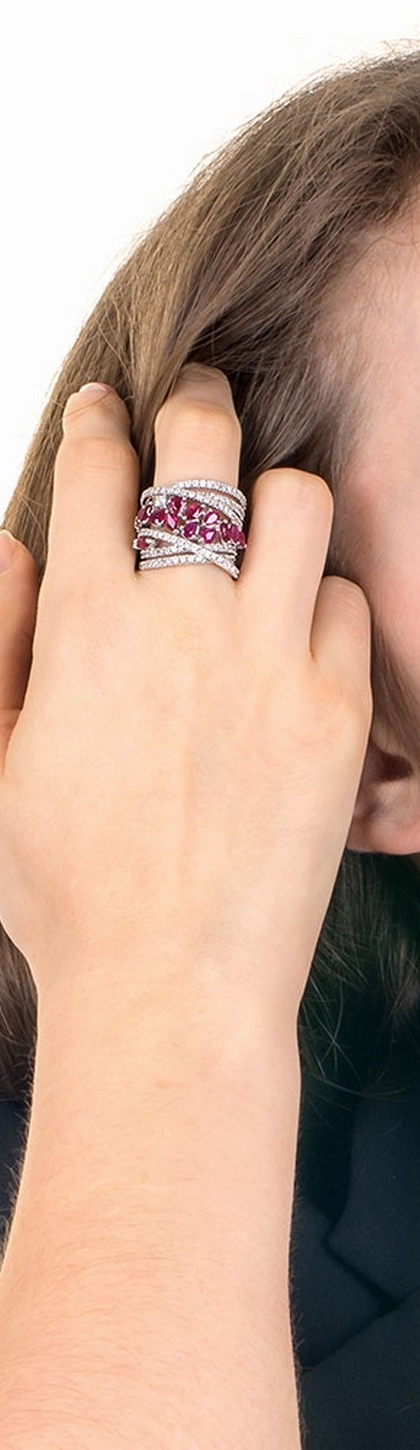 Ausgefallener Rubin Ring mit Diamanten Weißgold 18K