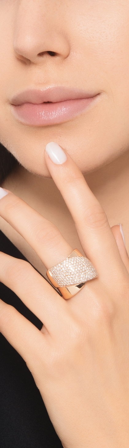 Fein gefasste Diamanten verleihen dem Schmuckstück ein unvergleichliches Funkeln und betonen die warme, feminine Farbnote des Roségolds.