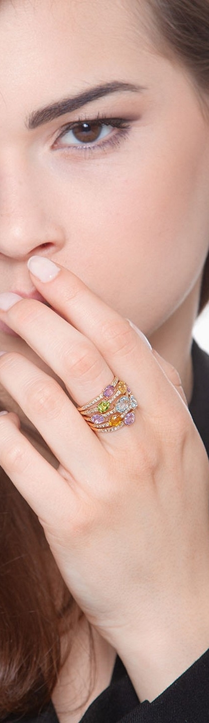Goldring mit Edelsteinen 18K Roségold Rainbow Kollektion
