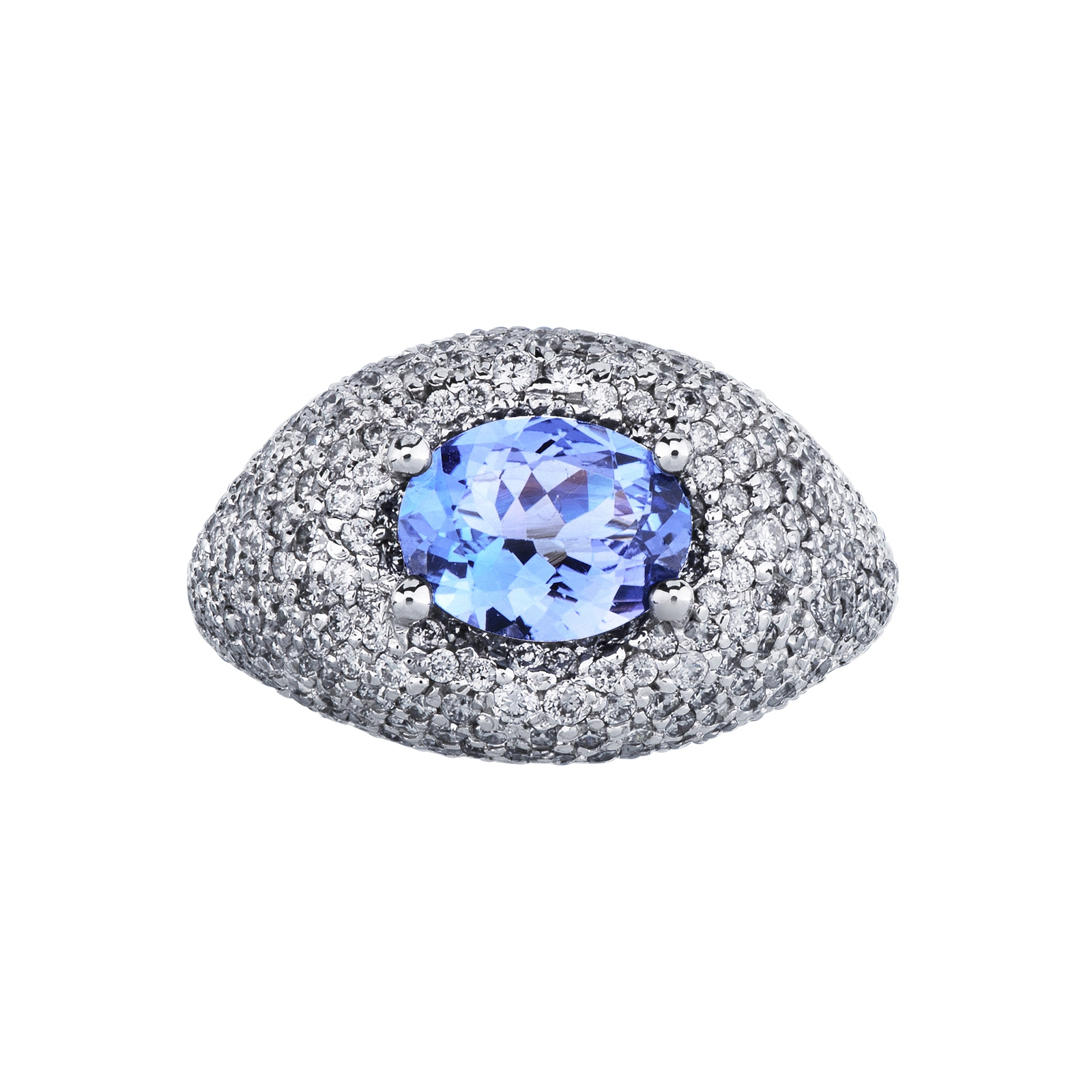 Jeder Edelstein wurde sorgfältig ausgewählt und präzise gefasst, um ein harmonisches Zusammenspiel von Farbe, Licht und Brillanz zu erzeugen. Der Tansanit zieht alle Blicke auf sich, während das Diamant-Pavé dem Ring eine luxuriöse, raffinierte Note verleiht.