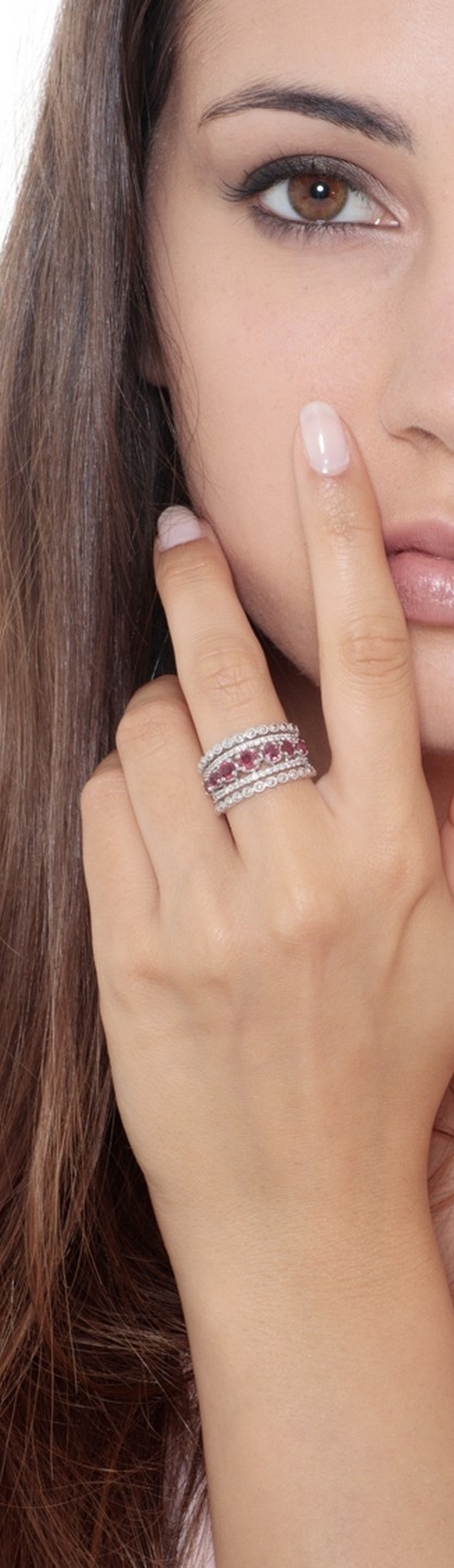 Weißgold Bandring Damen mit Diamanten und roten Rubinen