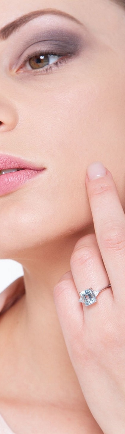 Aquamarin Ring mit Diamanten Weißgold