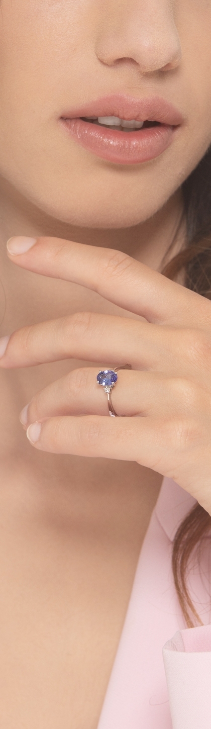 Damenring Weißgold mit Tansanit und 2 Diamanten