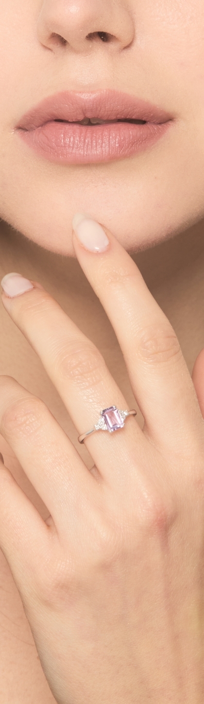 Damering aus 18K Weißgold mit Amethyst und Brillanten