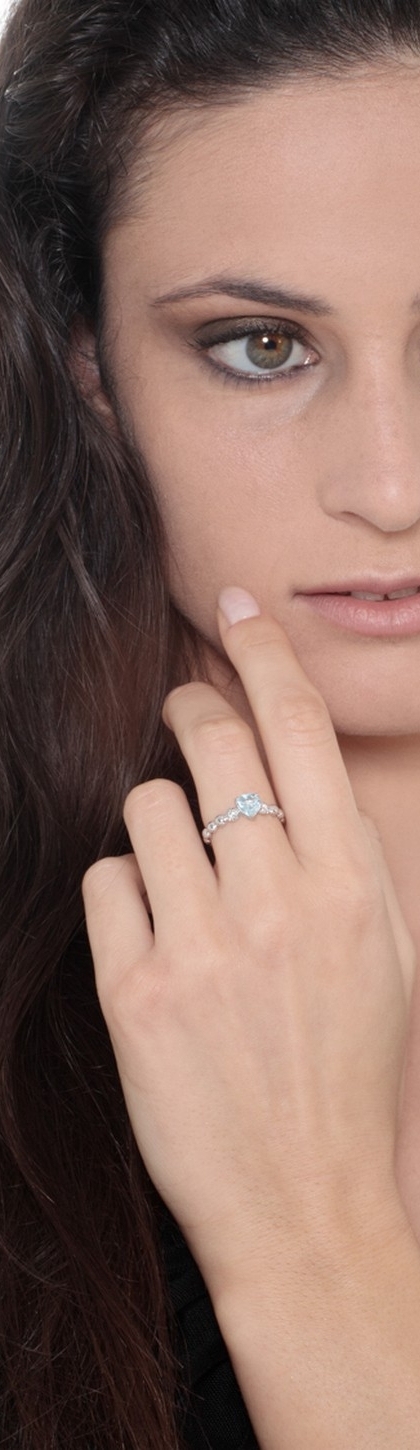 Herz Ring mit Aquamarin und Diamanten 750er Weißgold