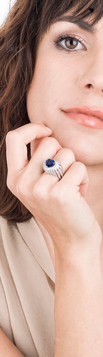 Herzring mit blauem Saphir und Diamanten Weißgold 750