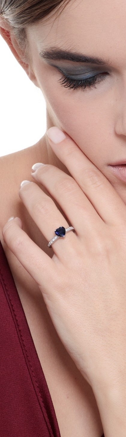 Herzring Weißgold 750 mit Saphir und Diamanten