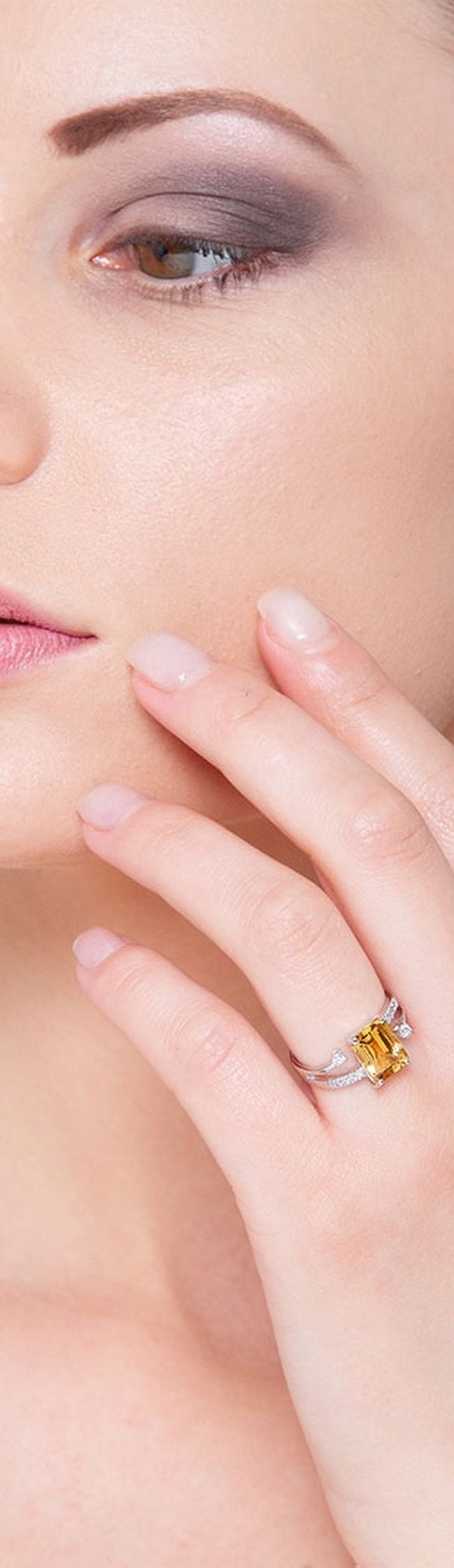 Moderner Weißgold Damenring mit Citrin und Diamanten