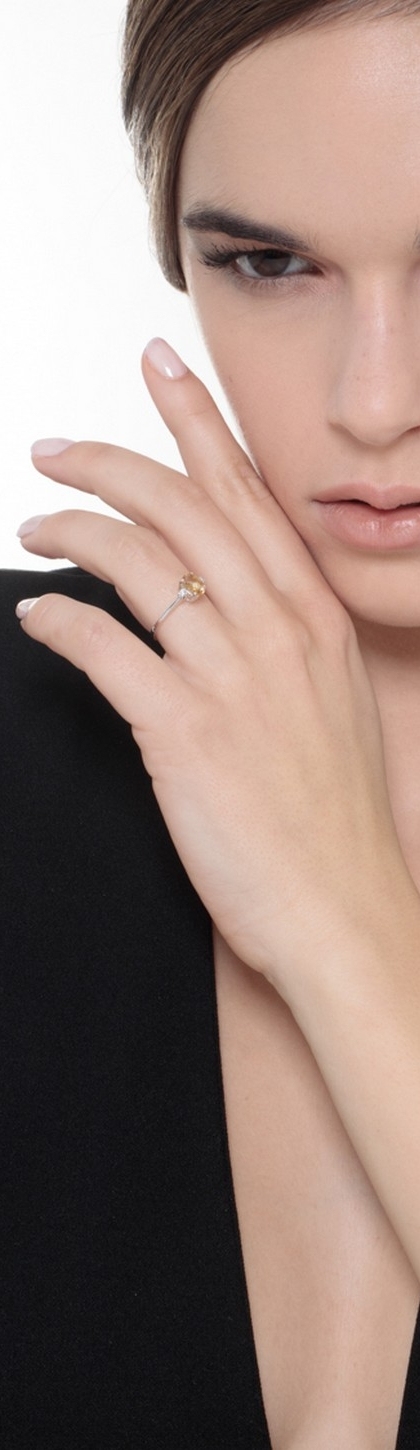 Ring aus 18k Weißgold mit ovalem Citrin und Diamanten