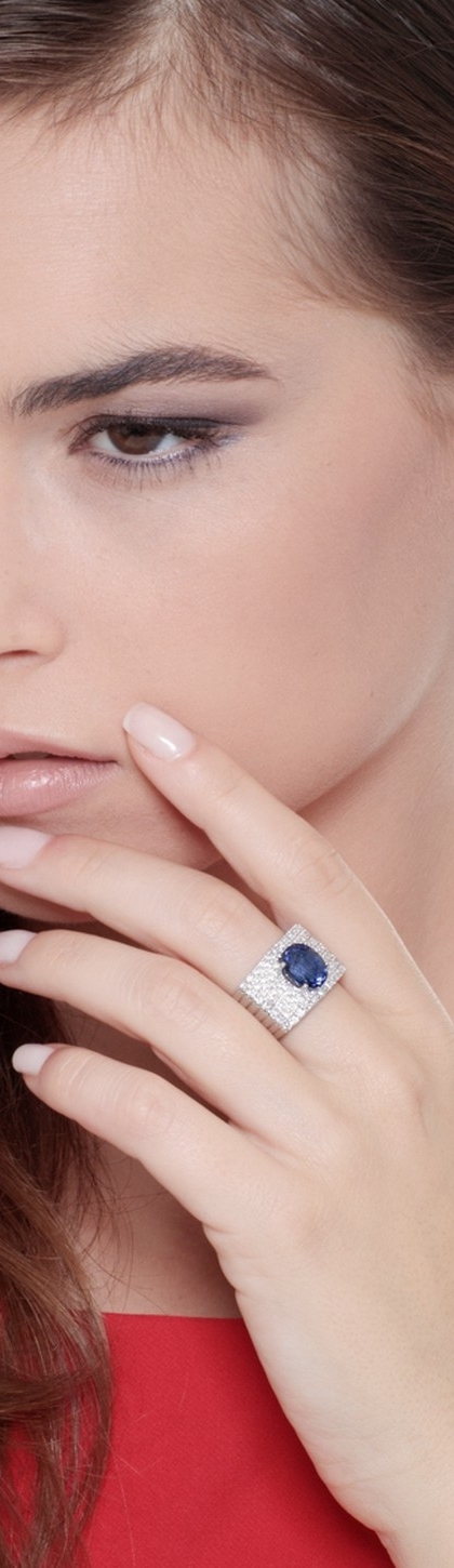 Ring mit blauem Saphir und Diamanten 18K Weißgold