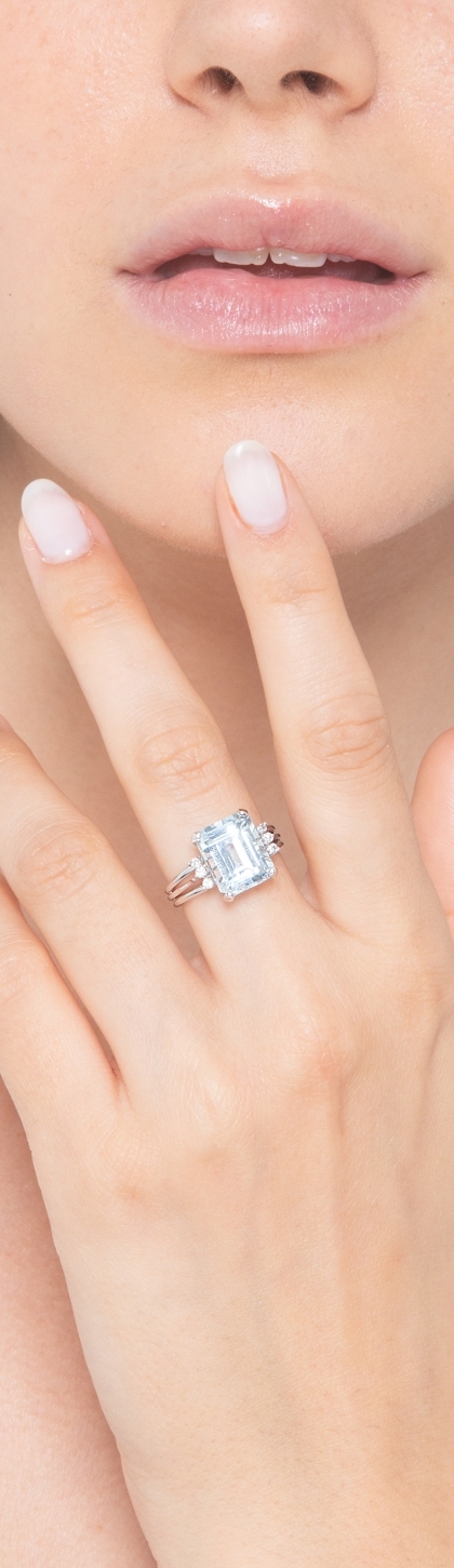 Weißgold 750 Aquamarin Ring mit Diamanten