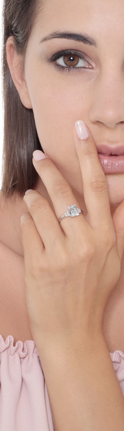 Weißgold 750 Damenring mit Aquamarin und Brillanten