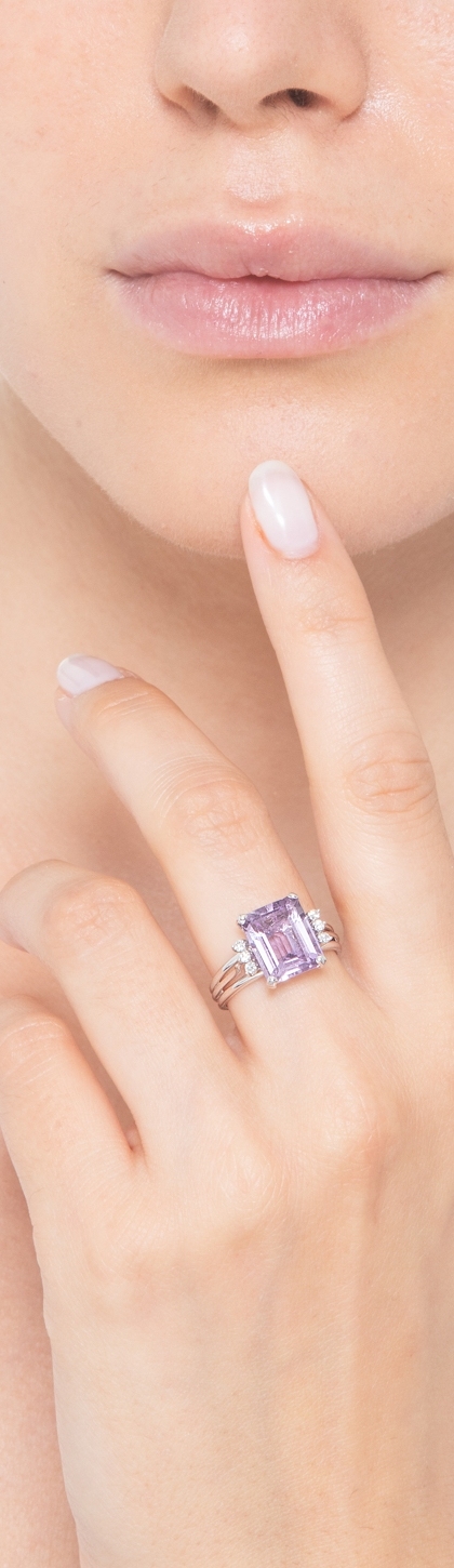 Weißgold 750 Ring mit Amethyst und Brillanten