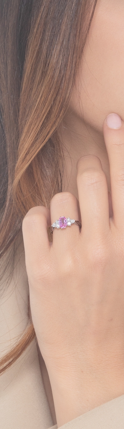 Weißgold 750 Saphir rosa Ring mit Diamanten