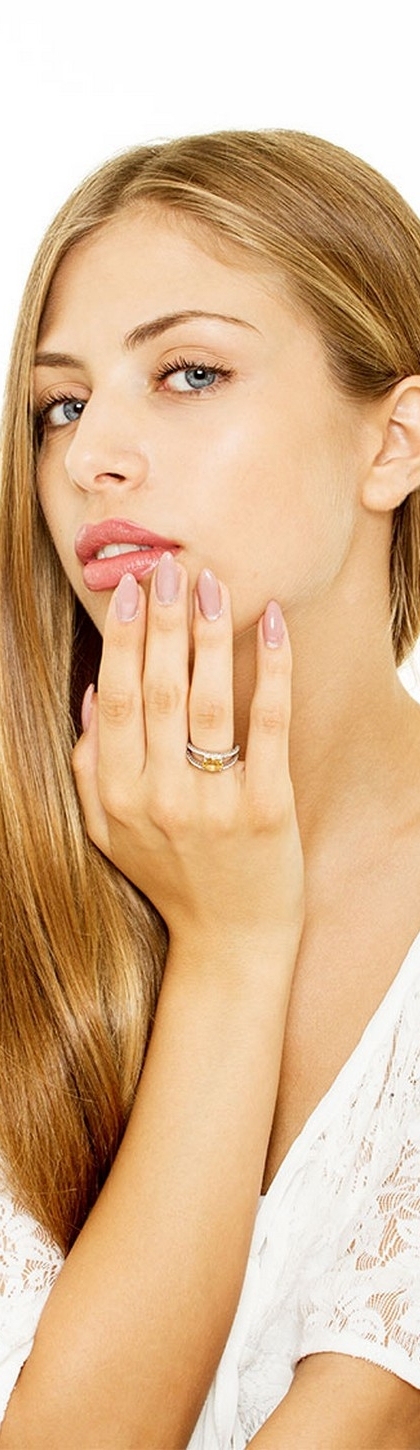 Weißgold-Ring 18 Karat mit Citrin zwischen zwei Reihen von Diamanten